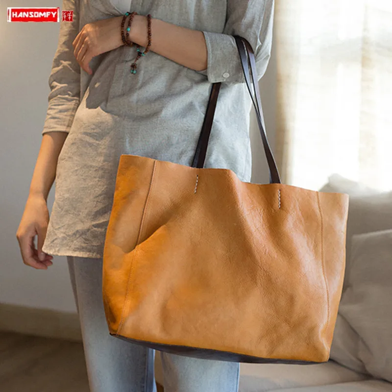 Genuine Leather women handbag 2019 new original handmade large capacity shoulder bag female first l