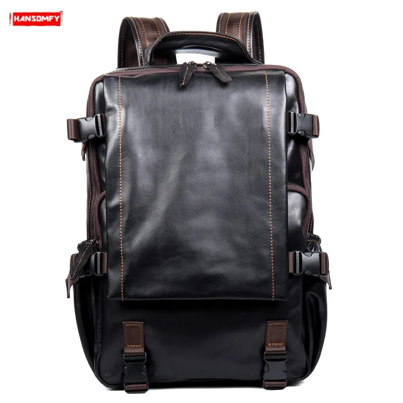 Genuine leather men's backpacks large capacity men laptop shoulder bag vintage soft black leather t