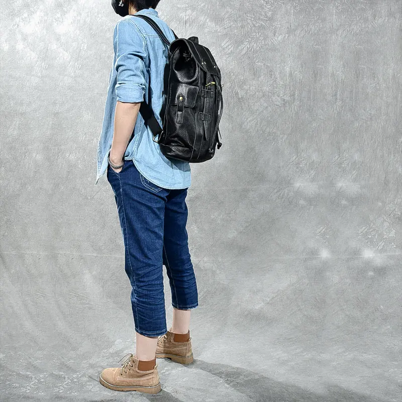 Large-capacity Genuine leather men's backpack travel Black Cowhide leather shoulder bag retro male