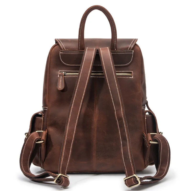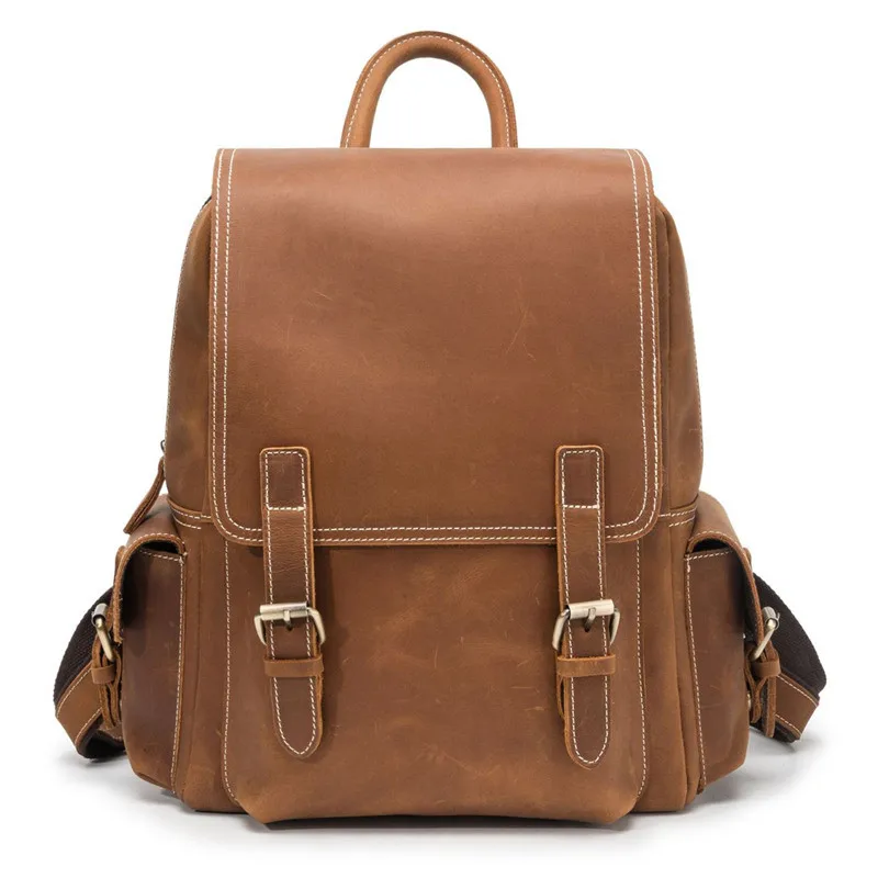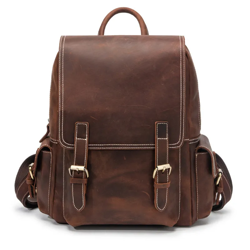 Best Quality Nesitu New High Quality Vintage Brown Thick Genuine Crazy Horse Leather A4 Women Men's Backpack Rea