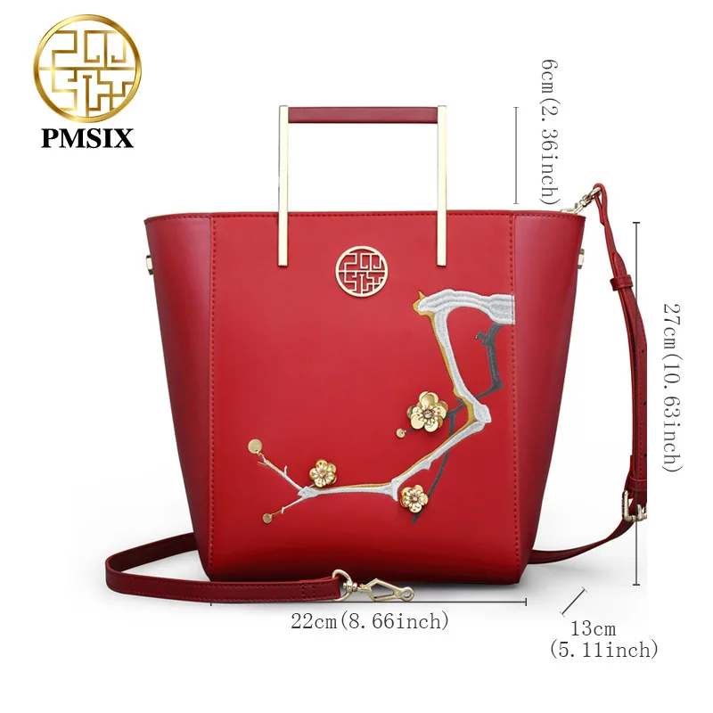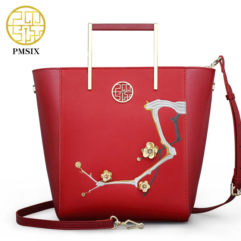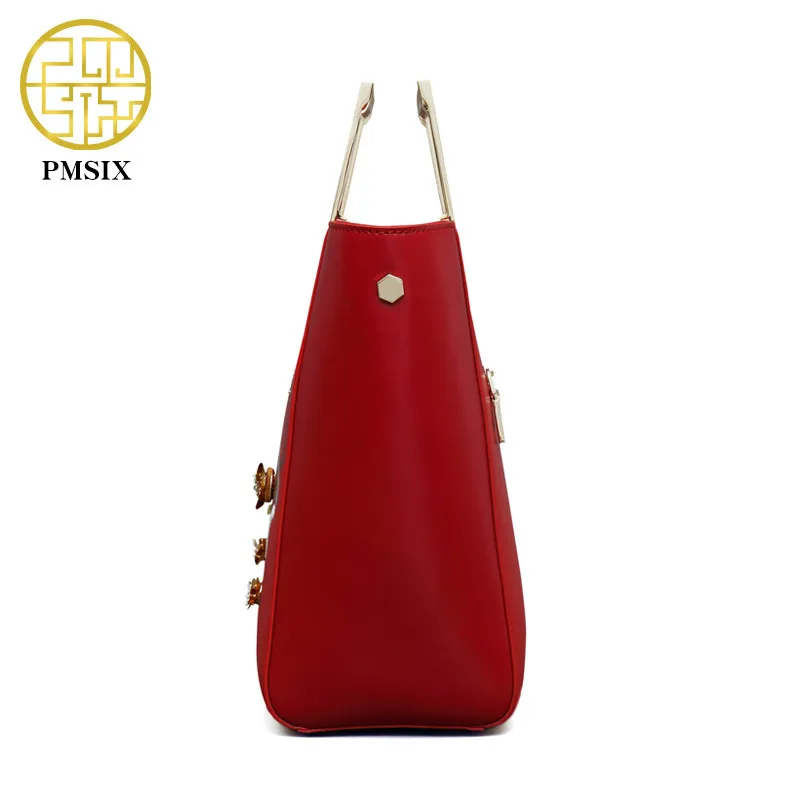 ORIGINAL Pmsix fashion designer cattle split leather bags women handbag brand high quality embossing ladies