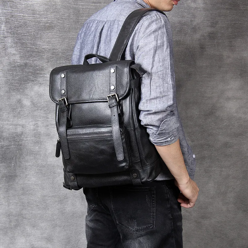 TOP PNDMEvin casual luxury genuine leather men's women's black backpack high quality soft cowhide desig