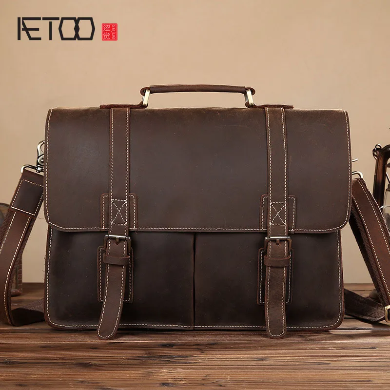 Leather cowhide retro men's bags crazy horse hand the bill of lading shoulder bag briefcase Busines