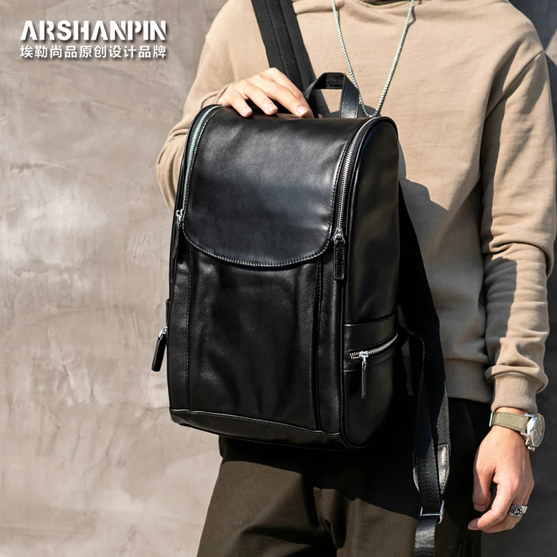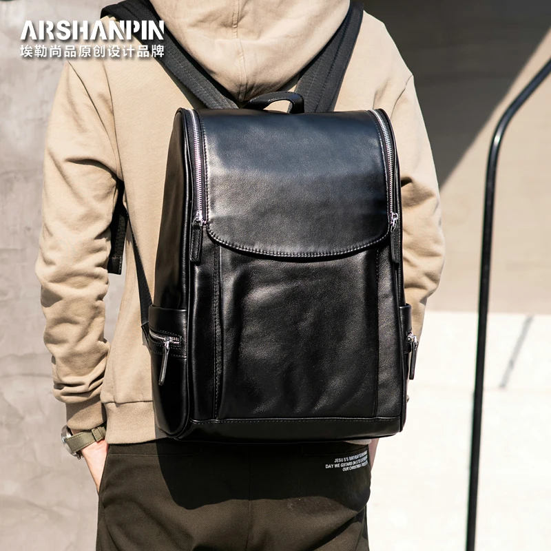 BEST QUALITY Simple leather Men backpack fashion genuine leather male large capacity backpack youth bag leisure