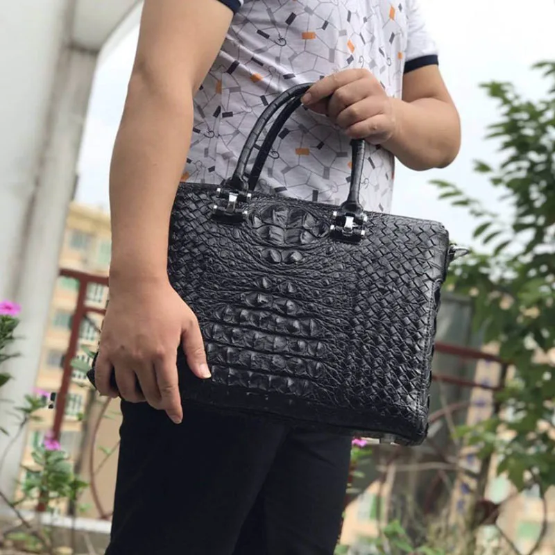 Best Quality ouruili Thai crocodile skin new hand-woven style Men computer bag men handbag fashionable business
