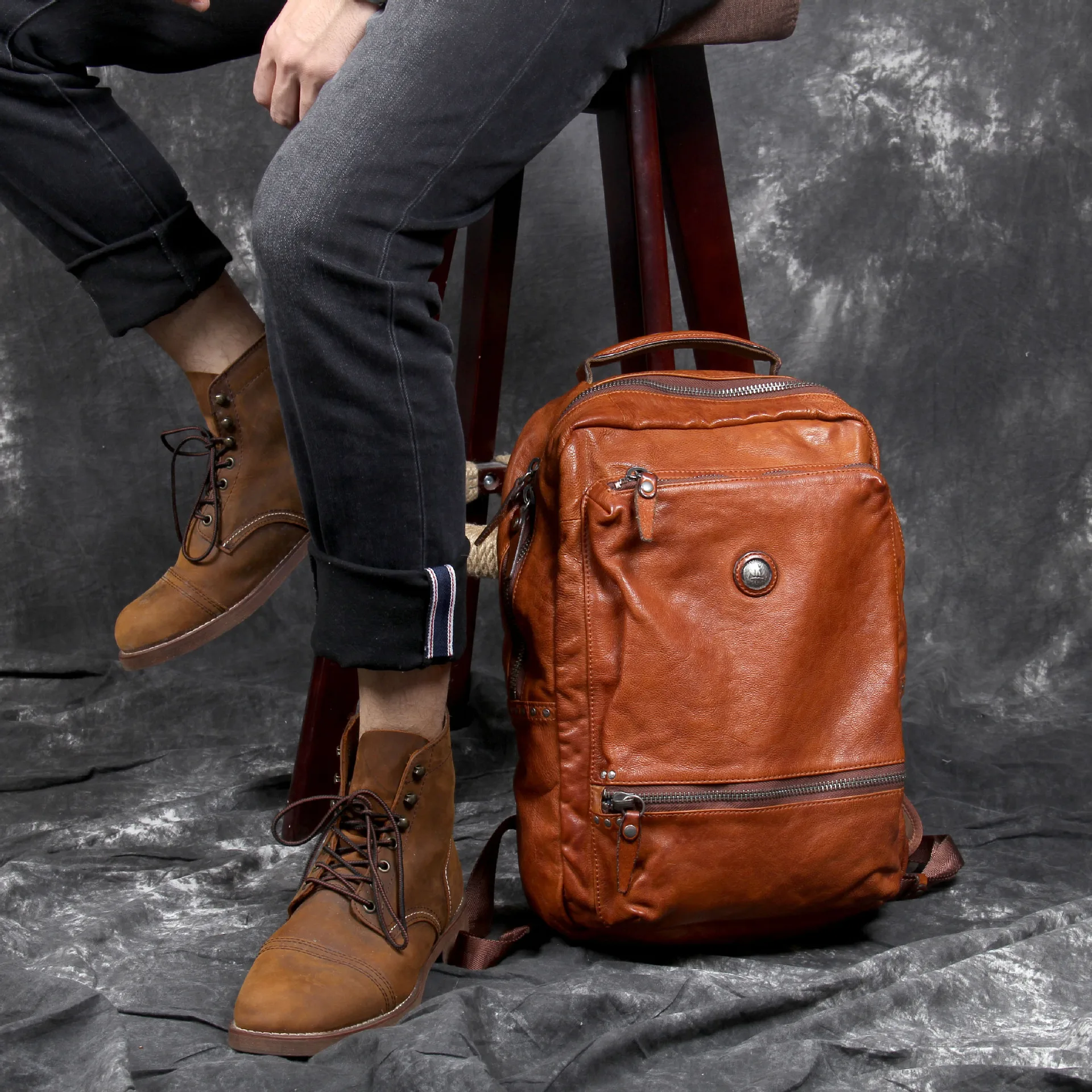 luxury Vintage leather men's backpack shoulder bag genuine leather laptop bag men travel backpacks