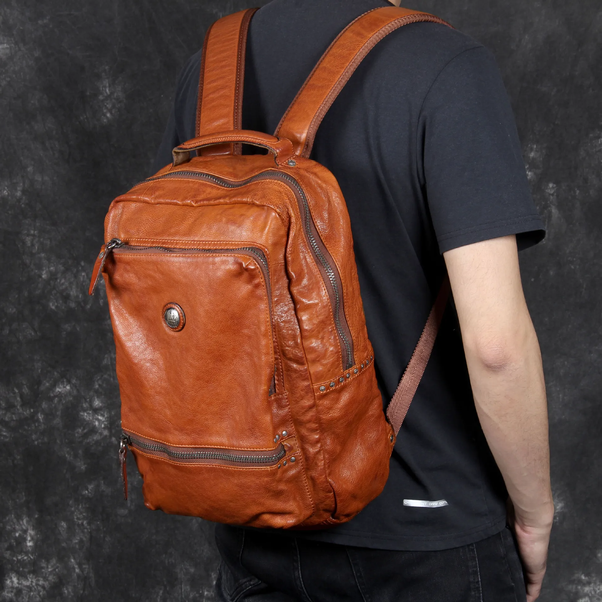 HOT Sale luxury Vintage leather men's backpack shoulder bag genuine leather laptop bag men travel backpacks