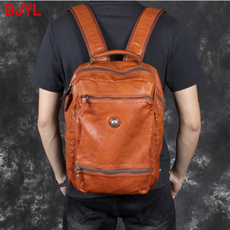BEST QUALITY luxury Vintage leather men's backpack shoulder bag genuine leather laptop bag men travel backpacks