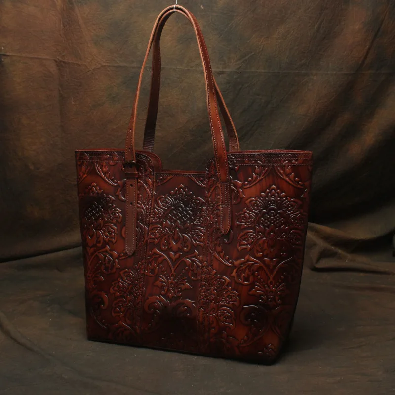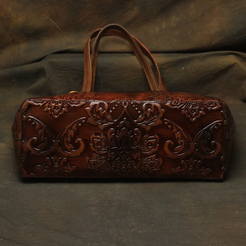 HOT SALE Nesitu High Quality Flower Pattern Vintage Coffee Thick Genuine Leather Women Handbags Lady Shoulde
