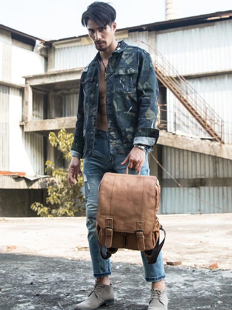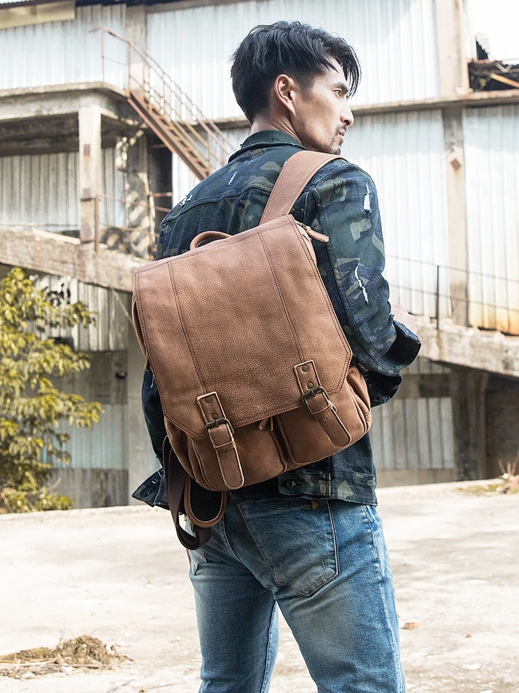 Original New Vintage Men's Backpack male shoulder Bag genuine Leather Schoolbag Men Scrub Leather L