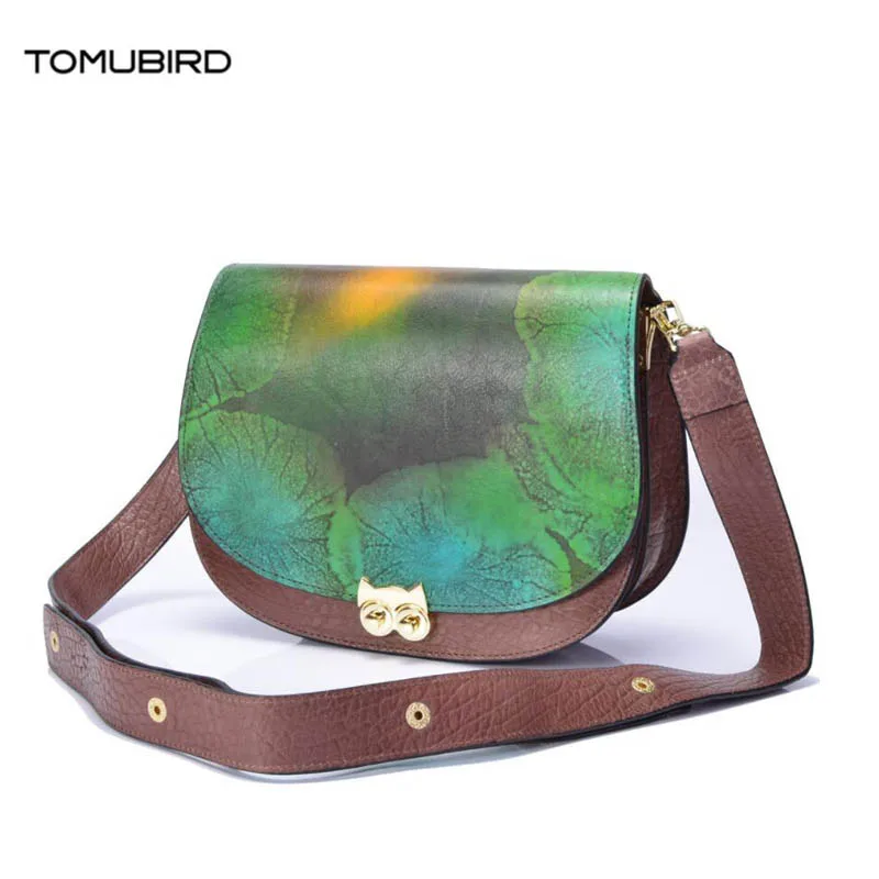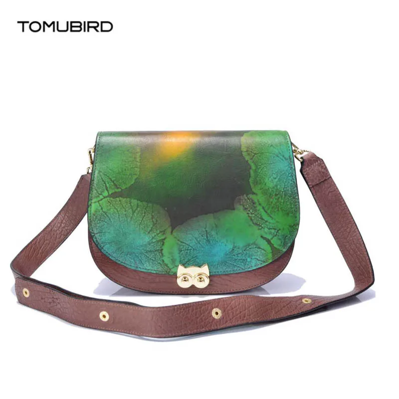 Review Top TOMUBIRD 2019 new Cowhide genuine leather women Embossing Leather art bag crossbody bags for women
