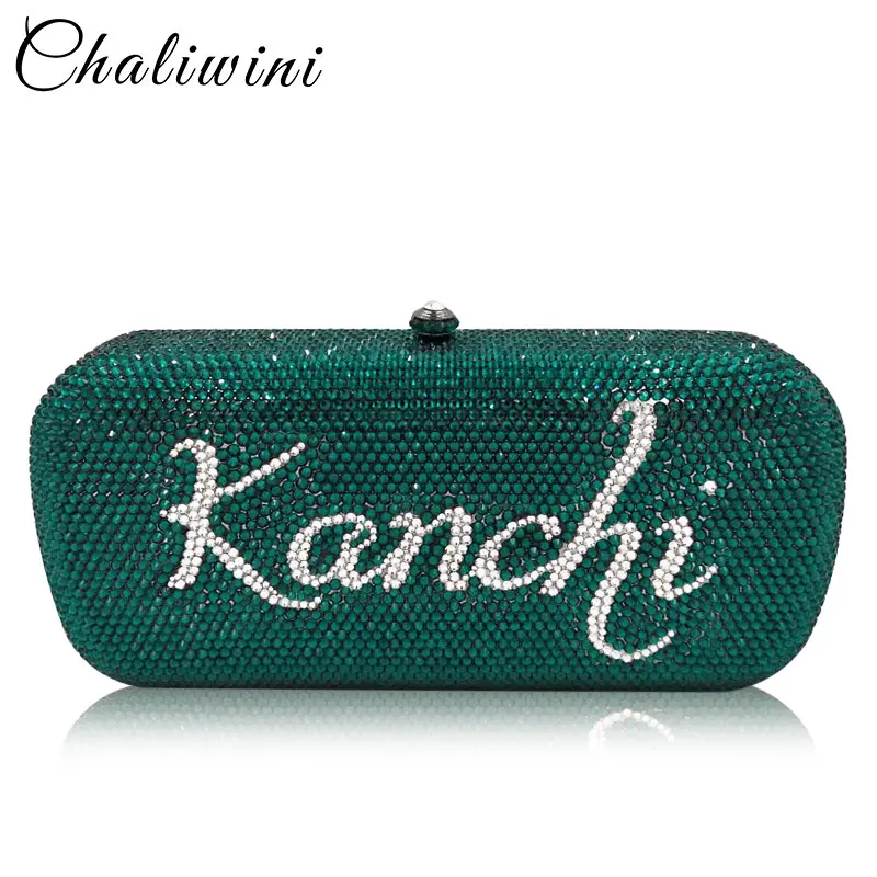 Chaliwini DIY Customize Name Letters Women Crystal Clutch Evening Handbags Purses Wedding Cocktail