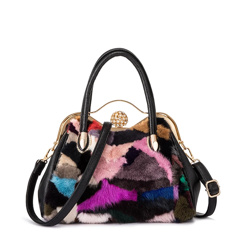 Realer women handbag genuine leather Top-handle bag for ladies Real Mex Mink Fur cross-body shoulde