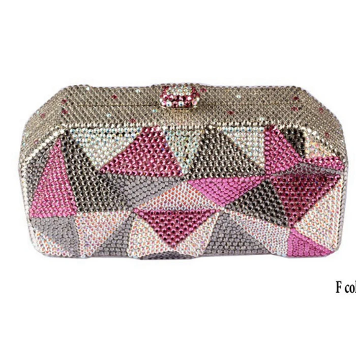 HIGH QUALITY Women red/grey Crystal Evening Clutch Minaudiere Bag Wedding Party Cocktail Diamond Handbag and Pur