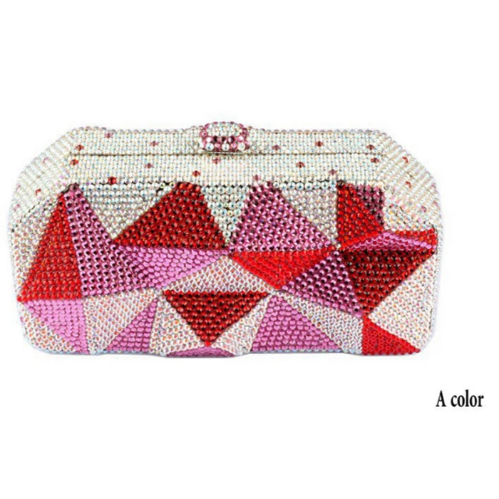 Women red/grey Crystal Evening Clutch Minaudiere Bag Wedding Party Cocktail Diamond Handbag and Pur